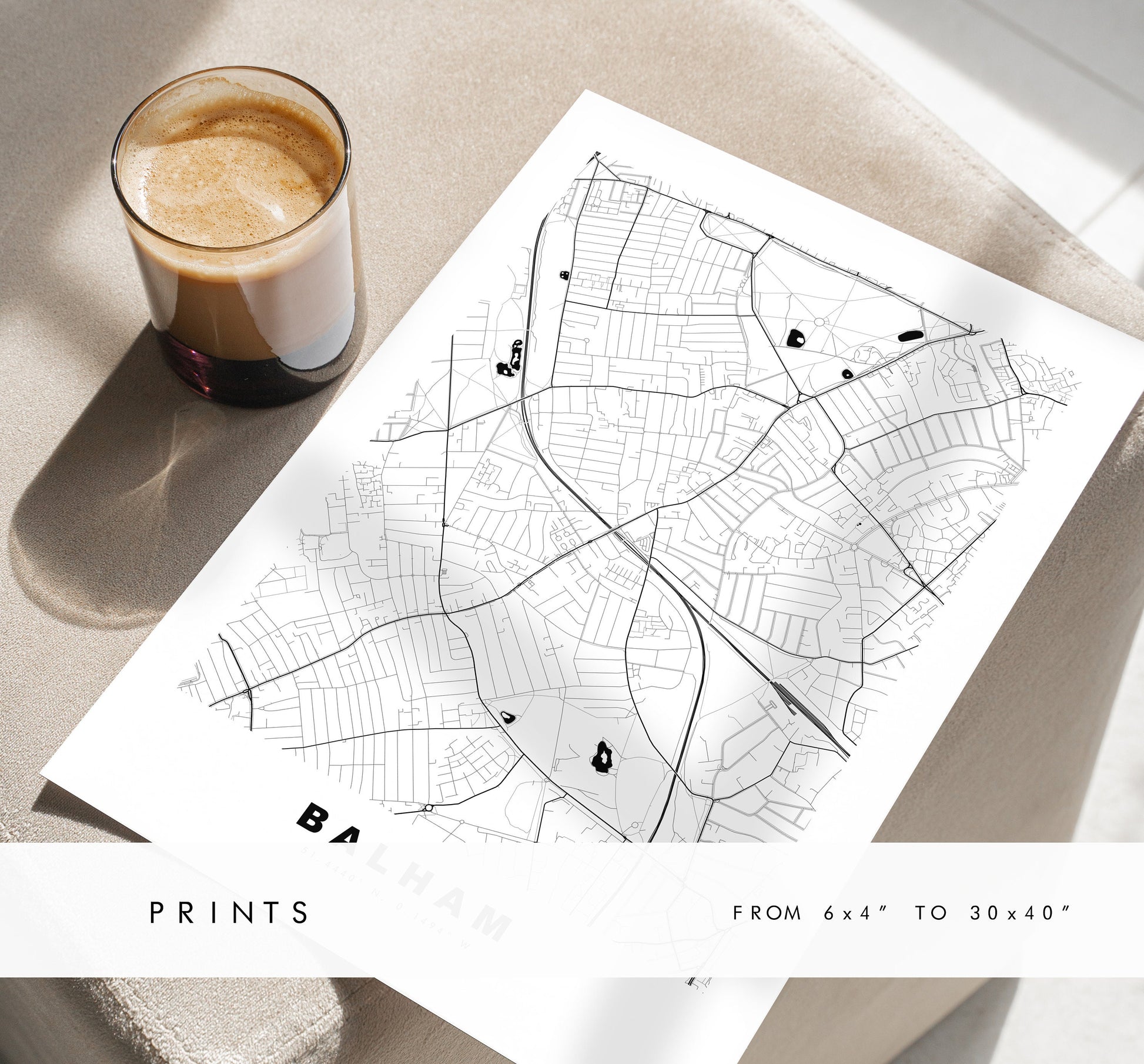 Balham Map Print - Minimalist City Map Poster - Map Art - London, UK - Balham Print - Balham Poster - Different Colours Available