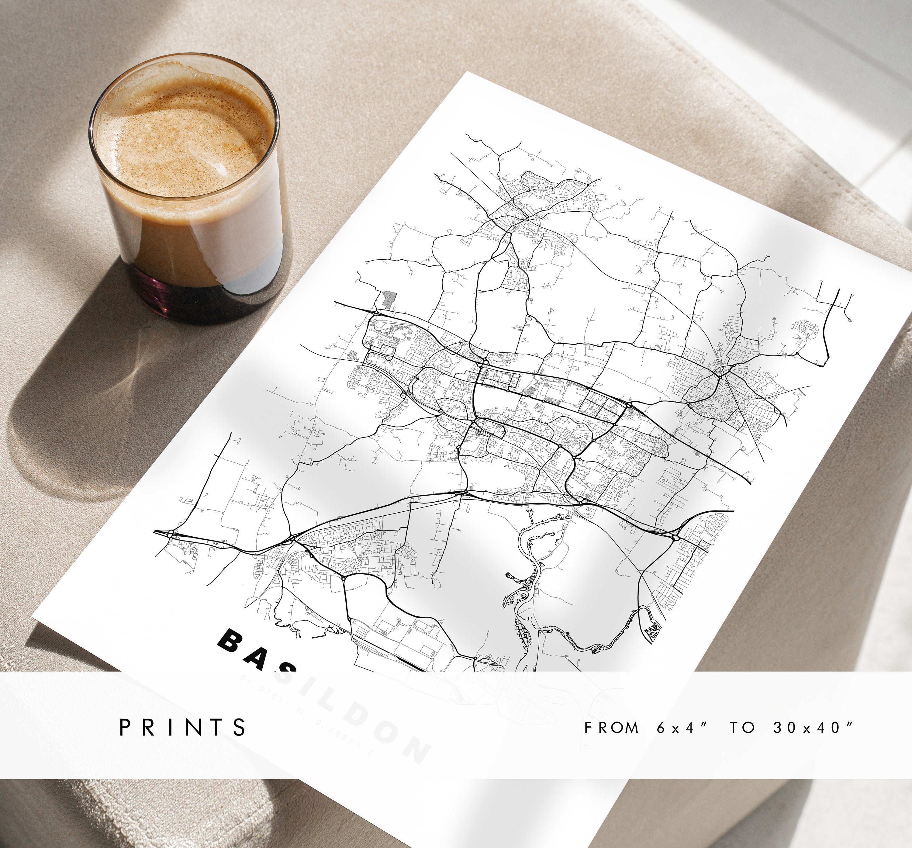 Basildon Map Print - Minimalist City Map Poster - Map Wall Art - UK - Basildon Print - Basildon Poster - Different Colours Available
