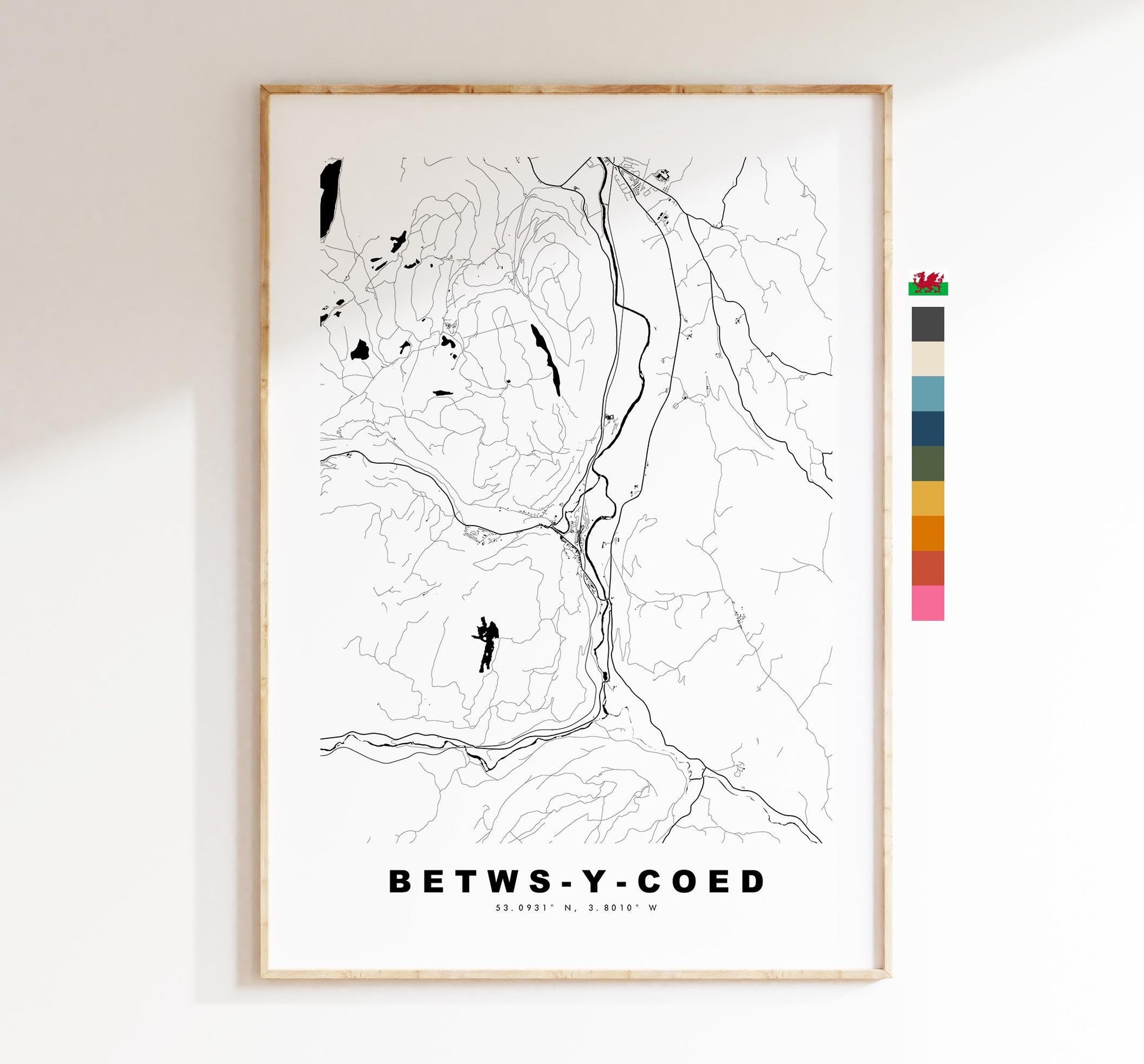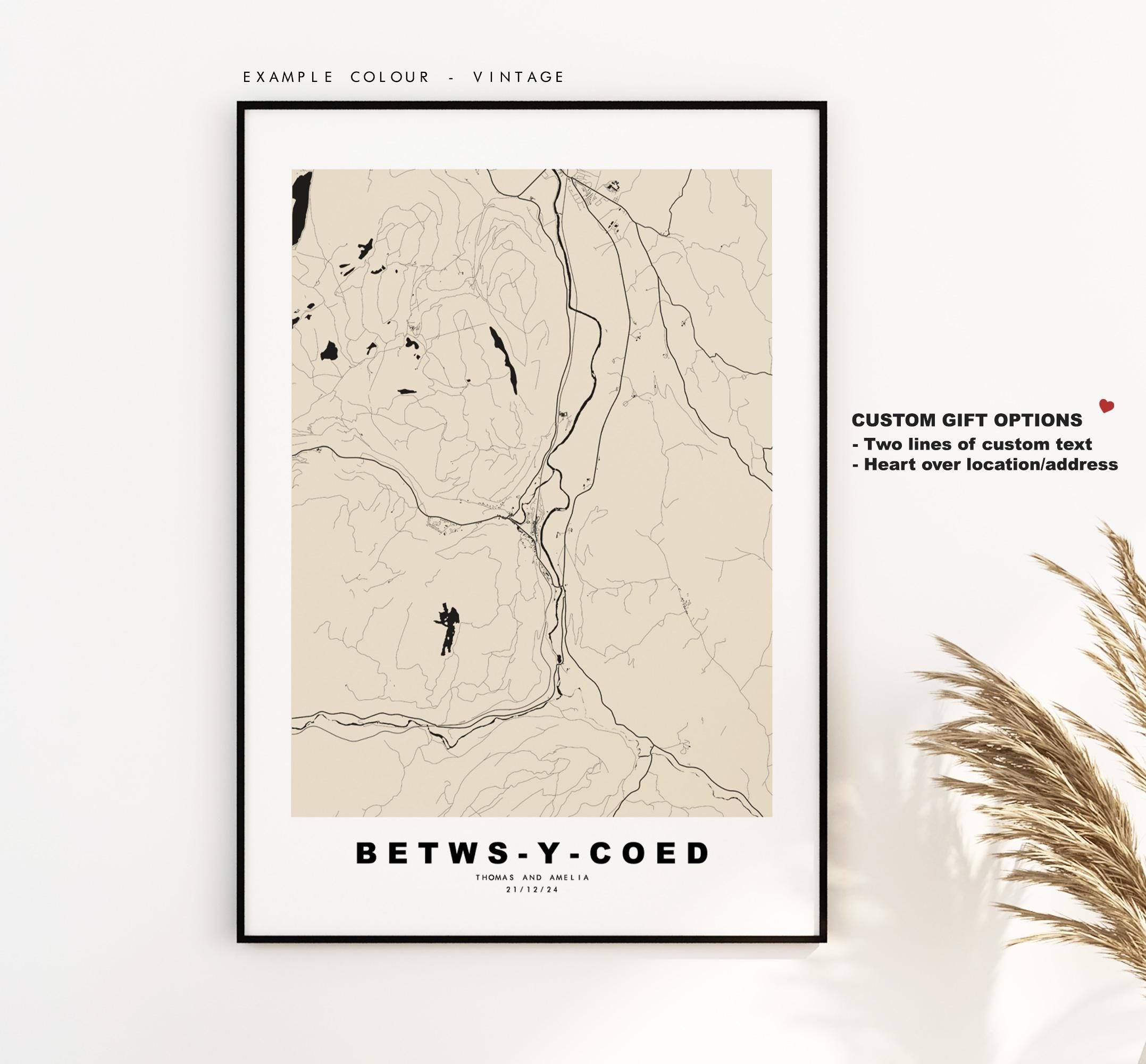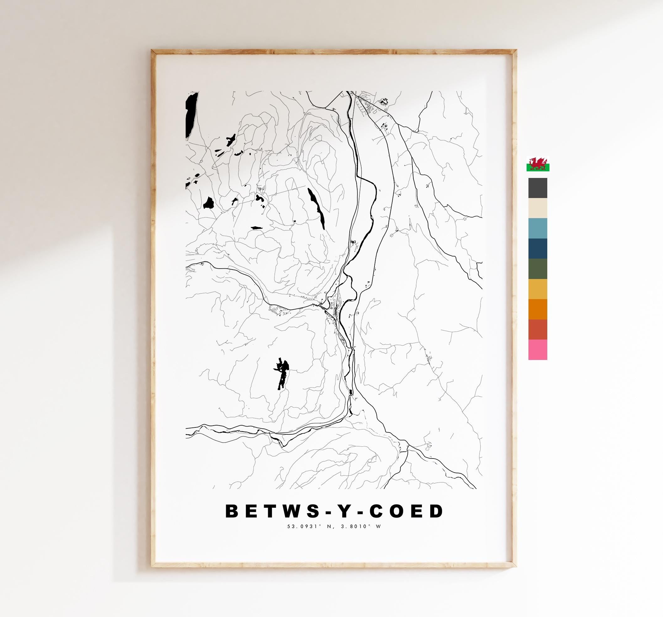 Betws-y-Coed Map Print - Minimalist City Map Poster - Map Art - Wales - UK - Betws-y-Coed Print - Poster - Different Colours Available