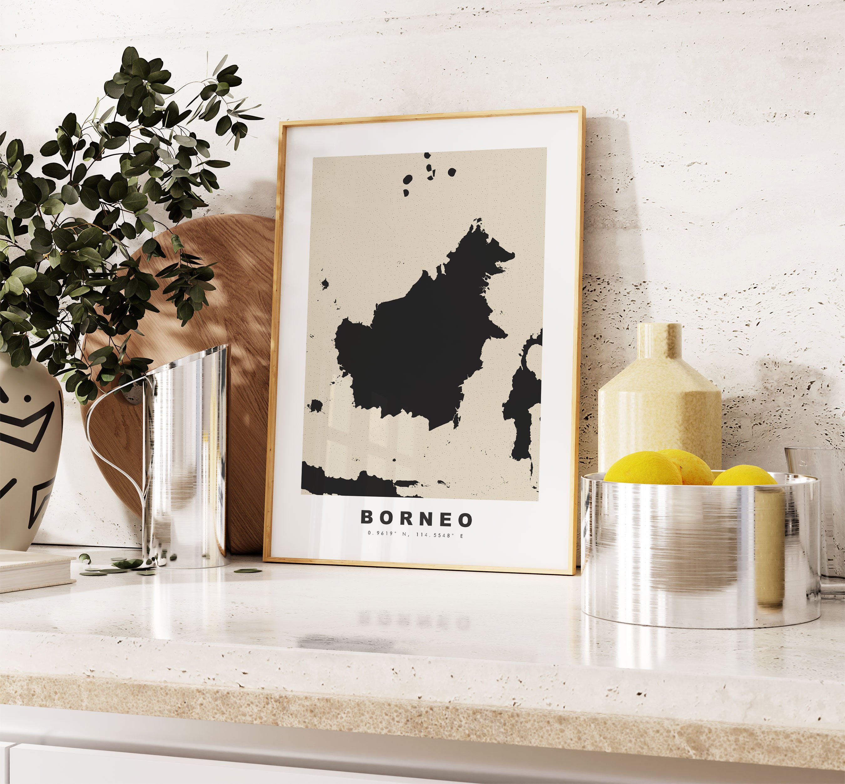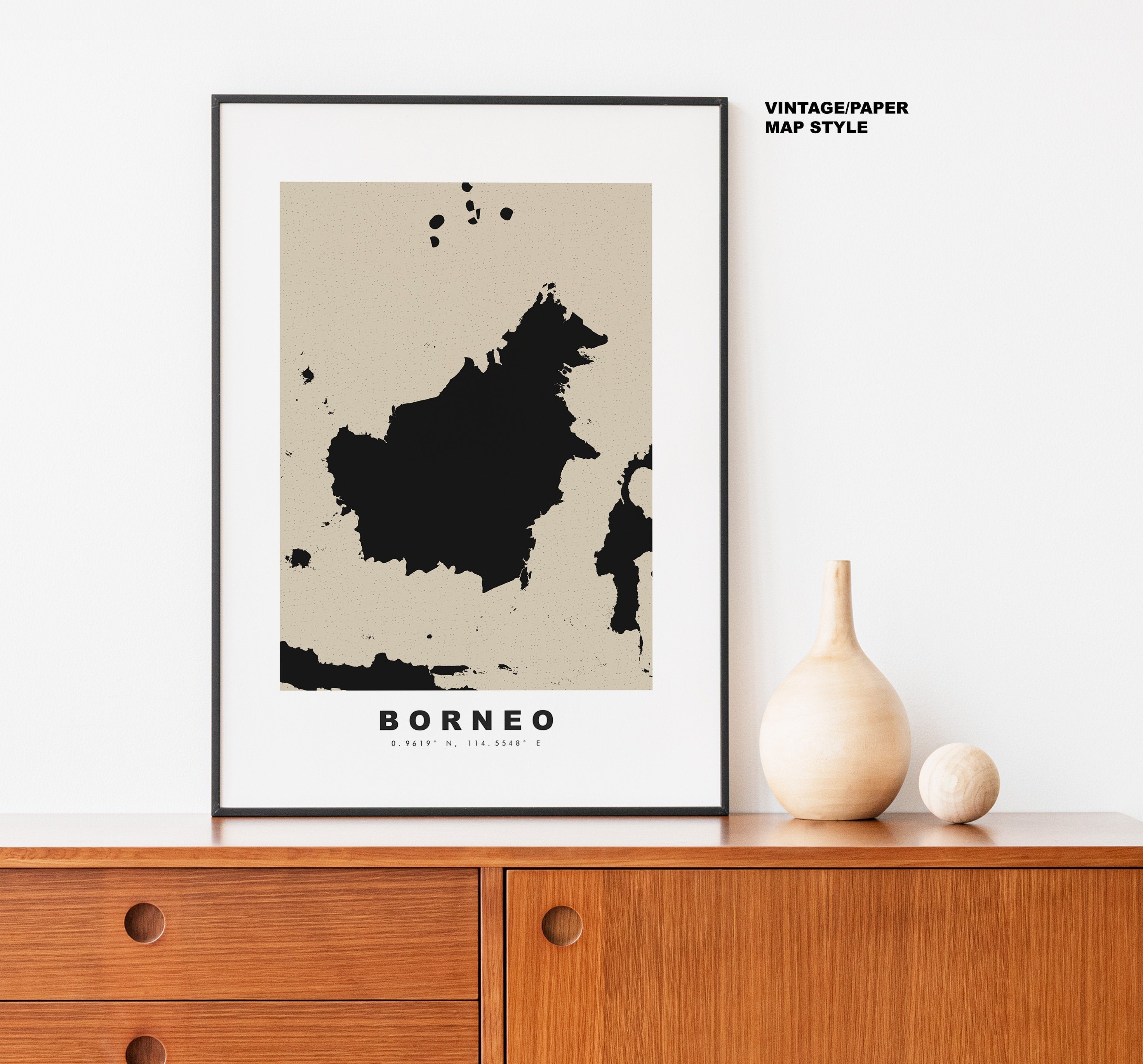 Borneo Map Print - Personalised Map Gift - Framed or Canvas Options Available - Custom Text Options - Personalised Gift - Asia