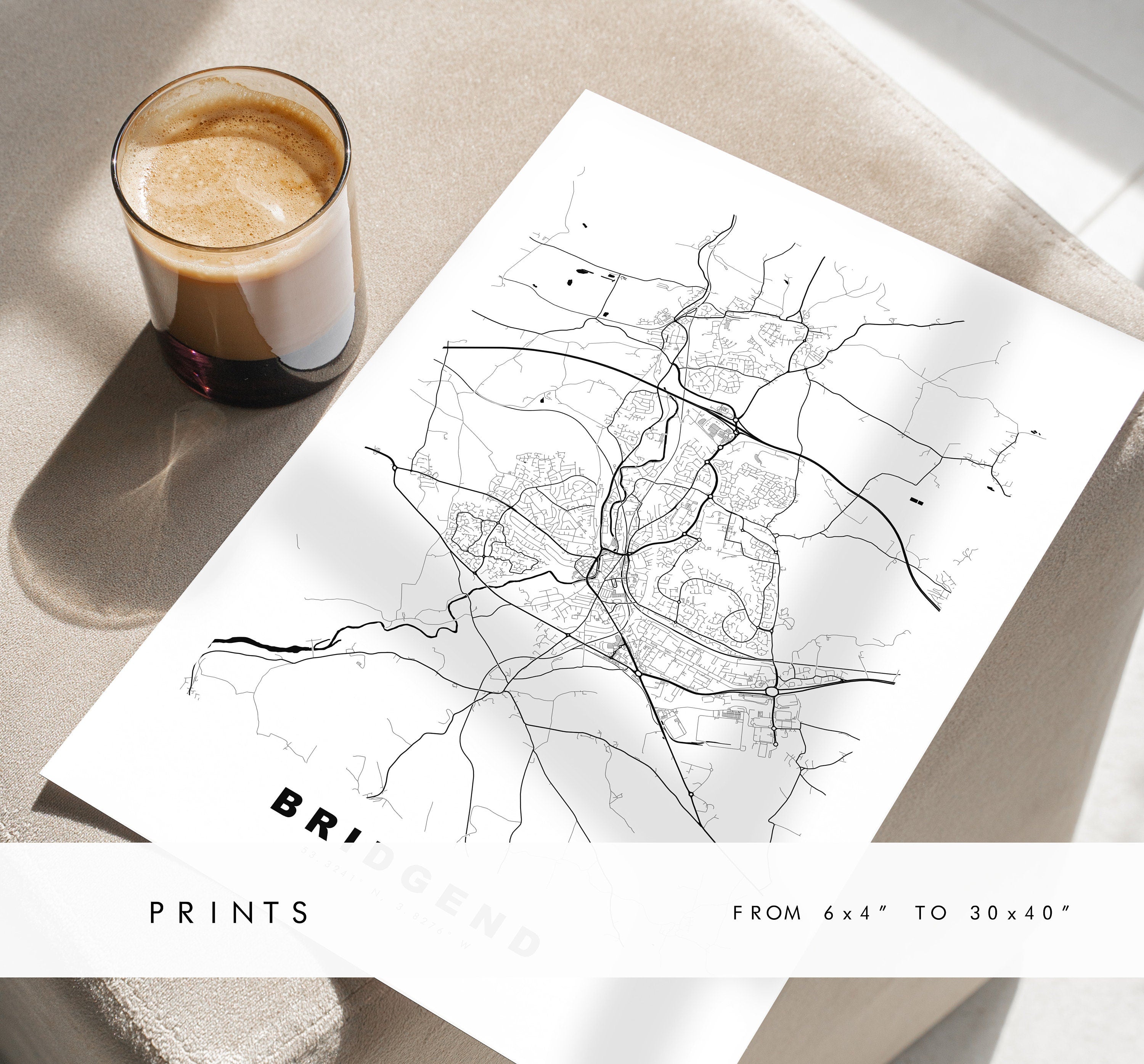 Bridgend Map Print - Minimalist City Map Poster - Map Art - Wales - UK - Bridgend Print - Bridgend Poster - Different Colours Available