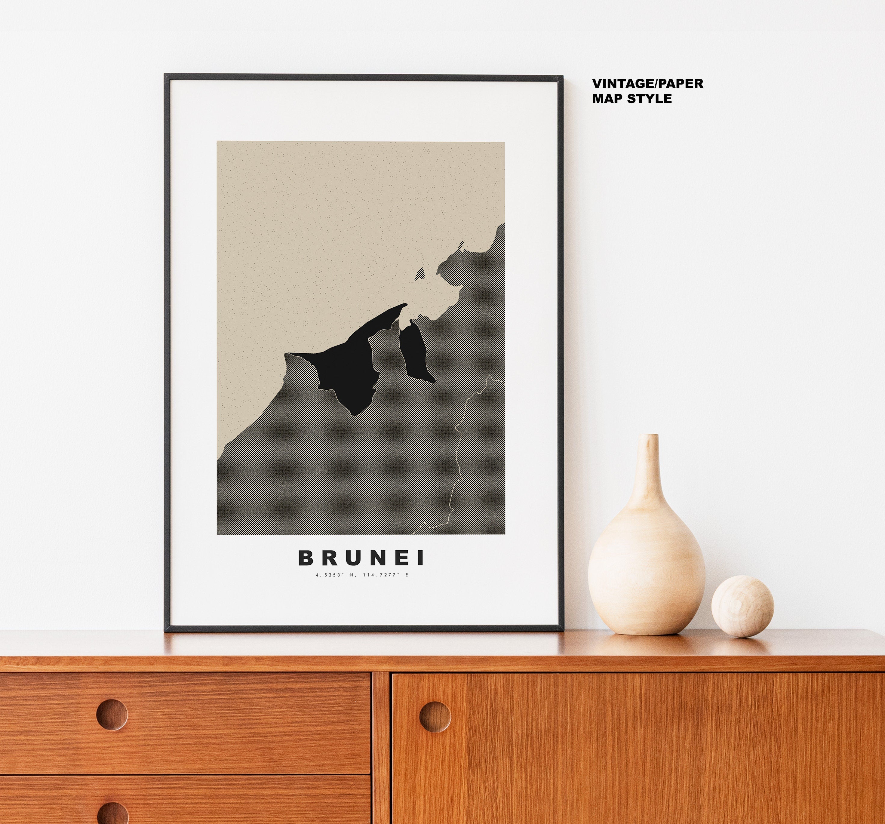 Brunei Map Print - Personalised Map Gift - Framed or Canvas Options Available - Custom Text Options - Personalised Gift - Asia
