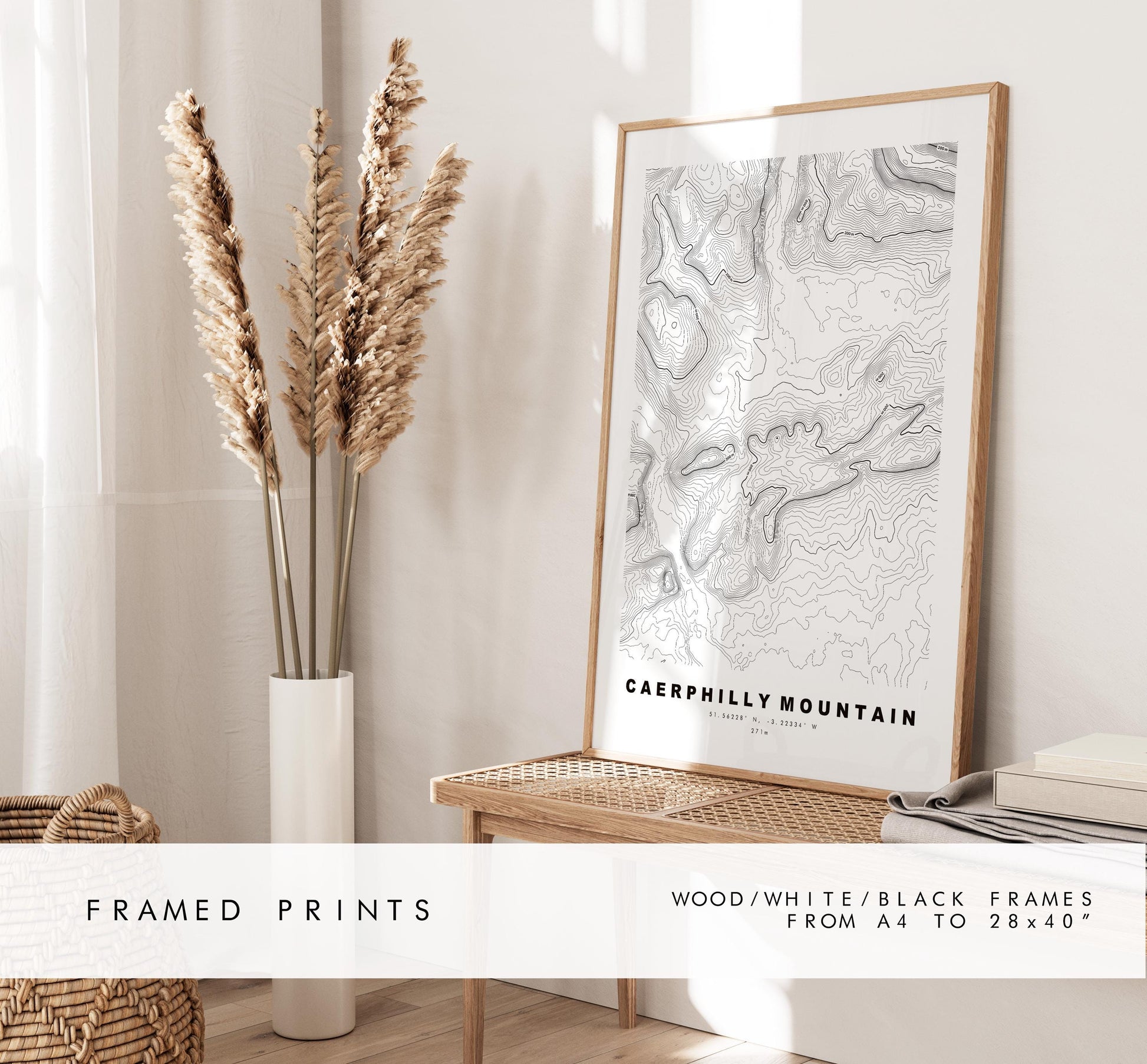 Caerphilly Mountain Print - Caerphilly Mountain Contour Map - Poster - Wales - Topographic Map - Print - Wall Art - Mynydd Caerffili