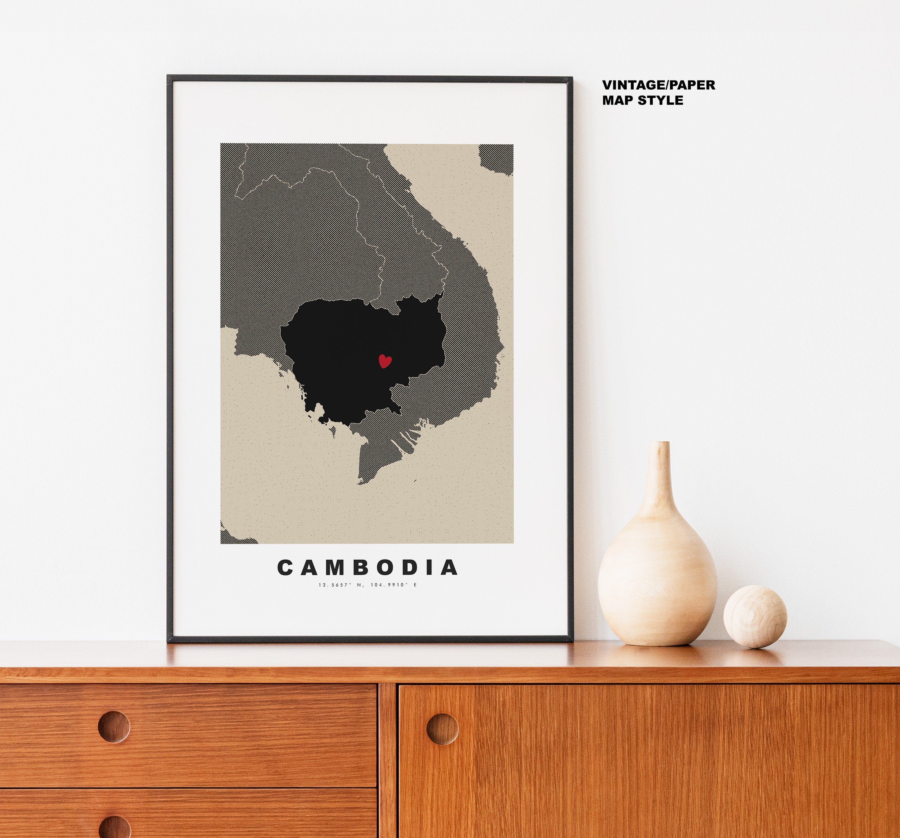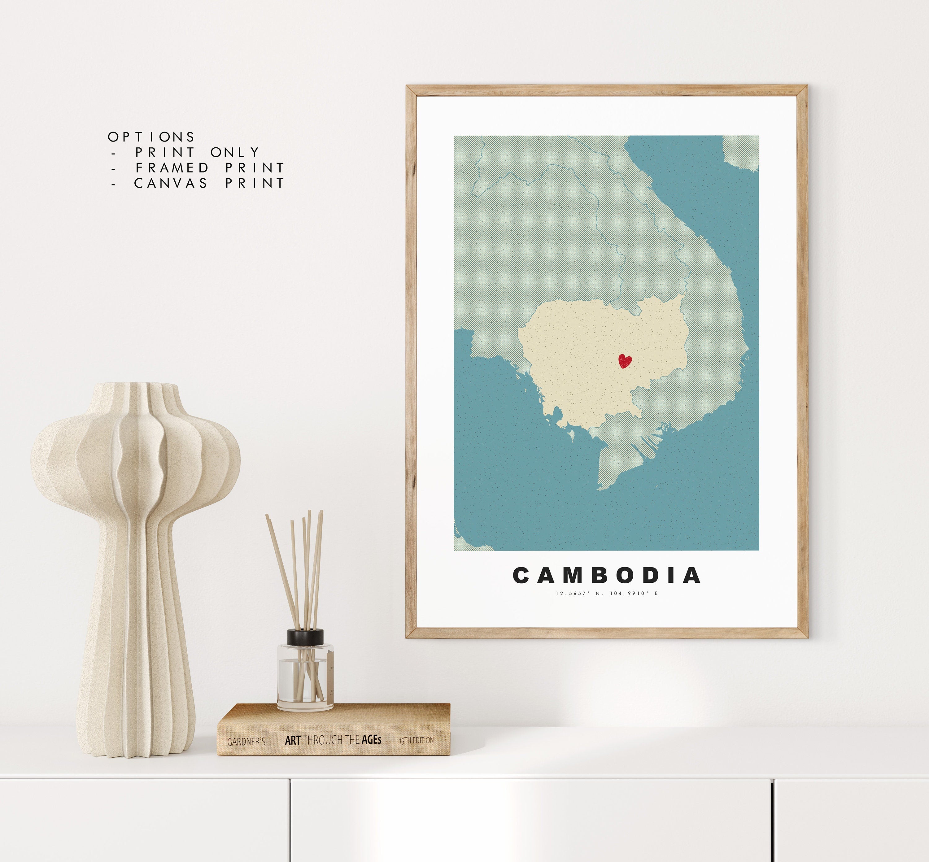 Cambodia Map Print - Personalised Map Gift - Framed or Canvas Options Available - Custom Text Options - Personalised Gift - Asia