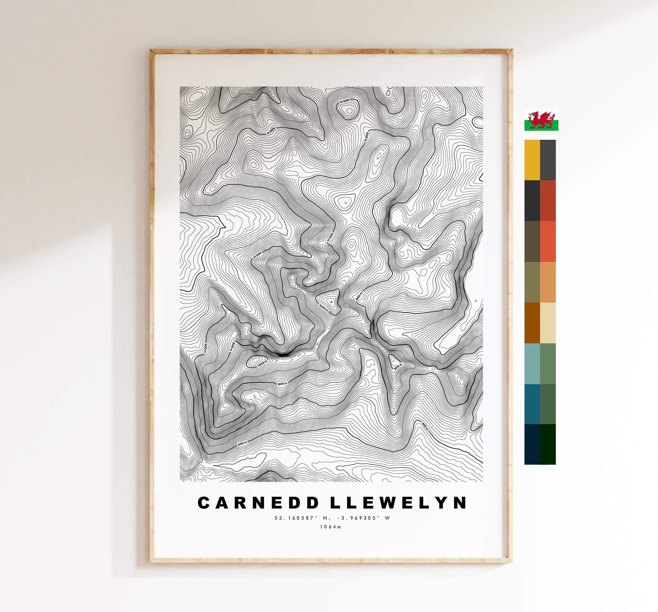 Carnedd Llewelyn Print - Contour Map - Snowdonia - Wales - Topographic Map - Print - Poster - Wall Art - Carnedd Llywelyn - Carneddau