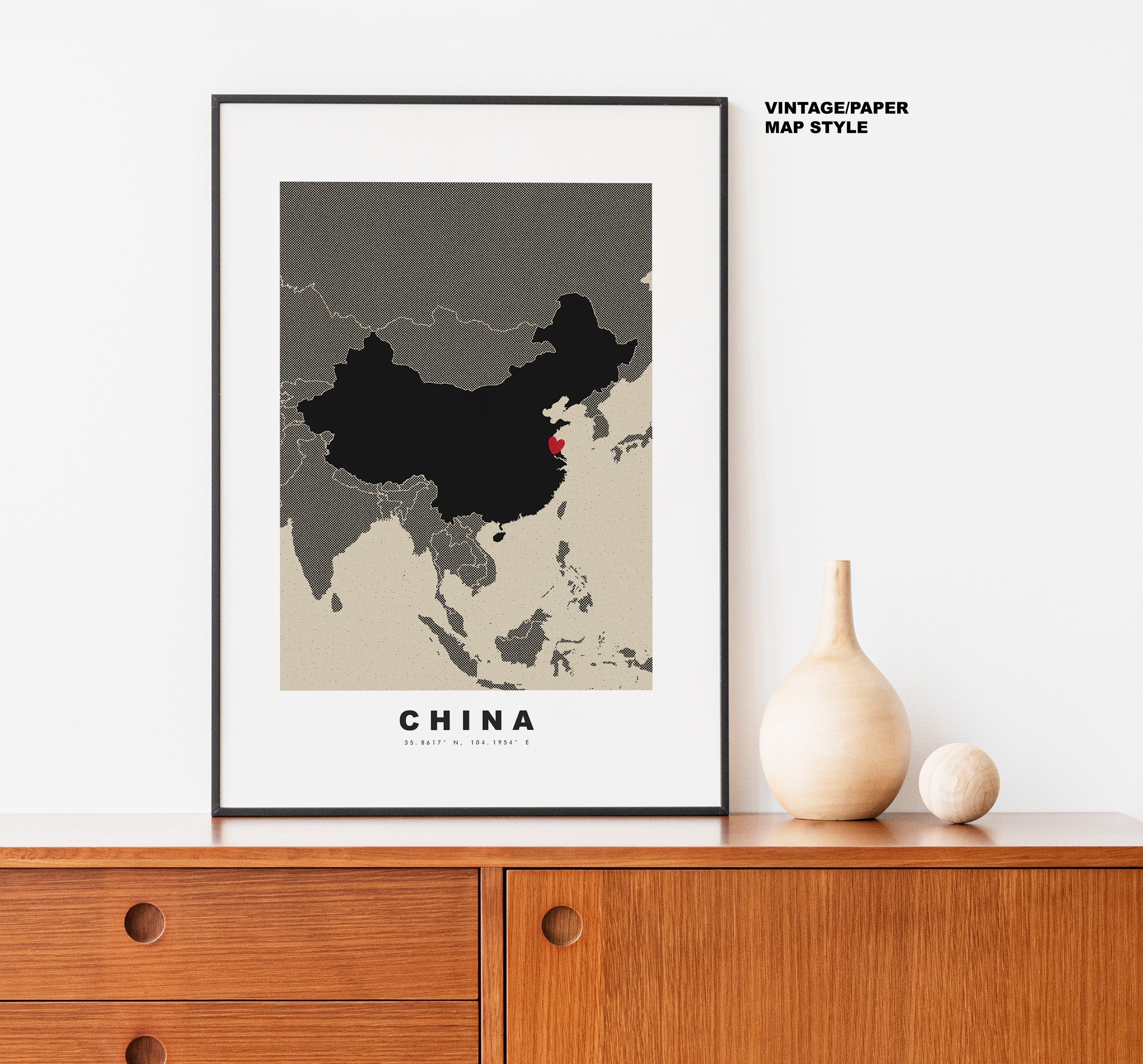 China Map Print - Personalised Map Gift - Framed or Canvas Options Available - Custom Text Options - Personalised Gift - Asia