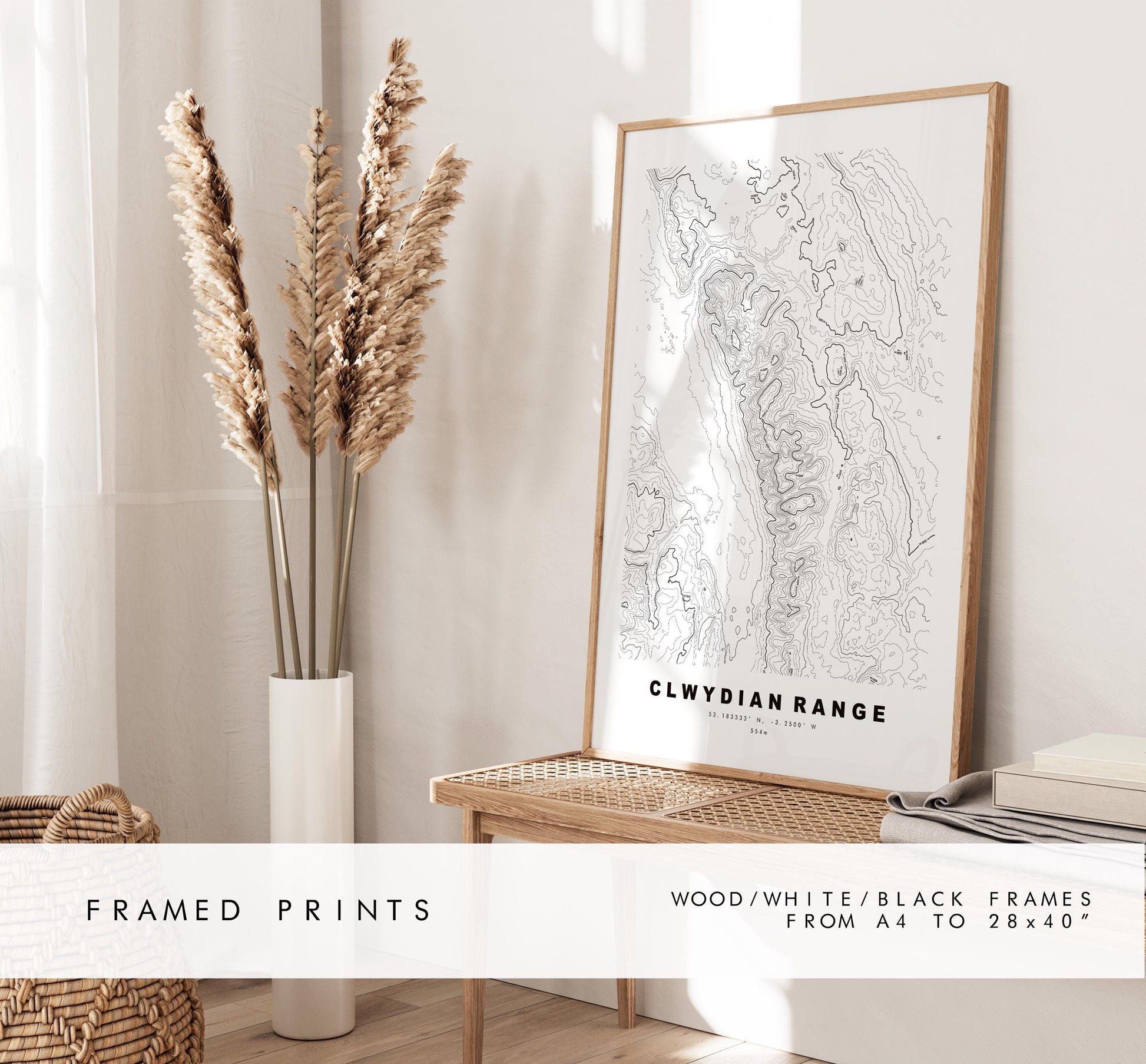 Clwydian Range contour map in a minimalist style, available in classic white/black or in a choice of map colours (see listing images). These contour maps are very detailed, with height markers at 200m intervals and the summit marked where possible - so the larger size the better!