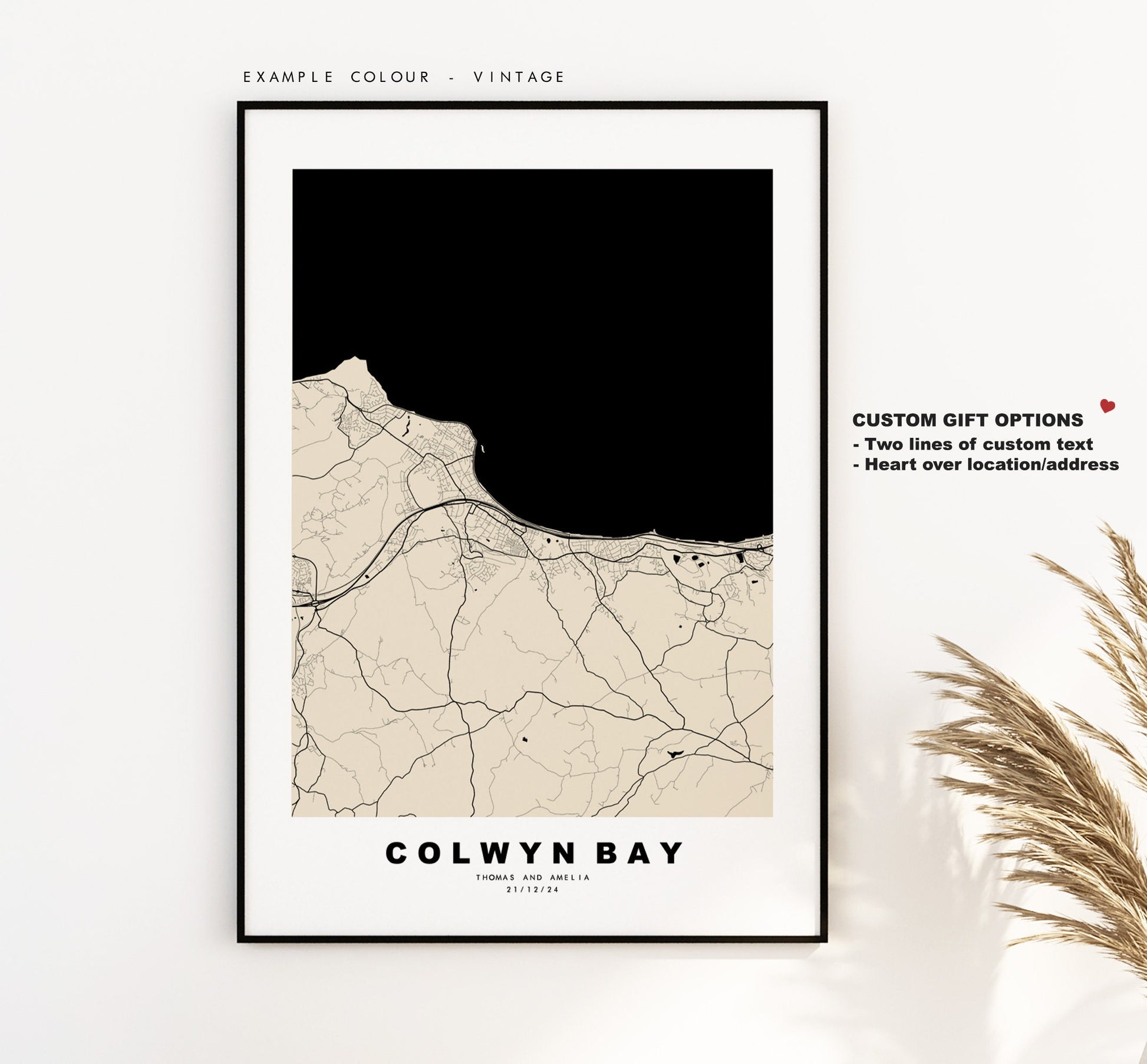 Colwyn Bay Map Print - Minimalist City Map Poster - Map Art - Wales - UK - Colwyn Bay Print - Colwyn Bay Poster - Different Colours Available