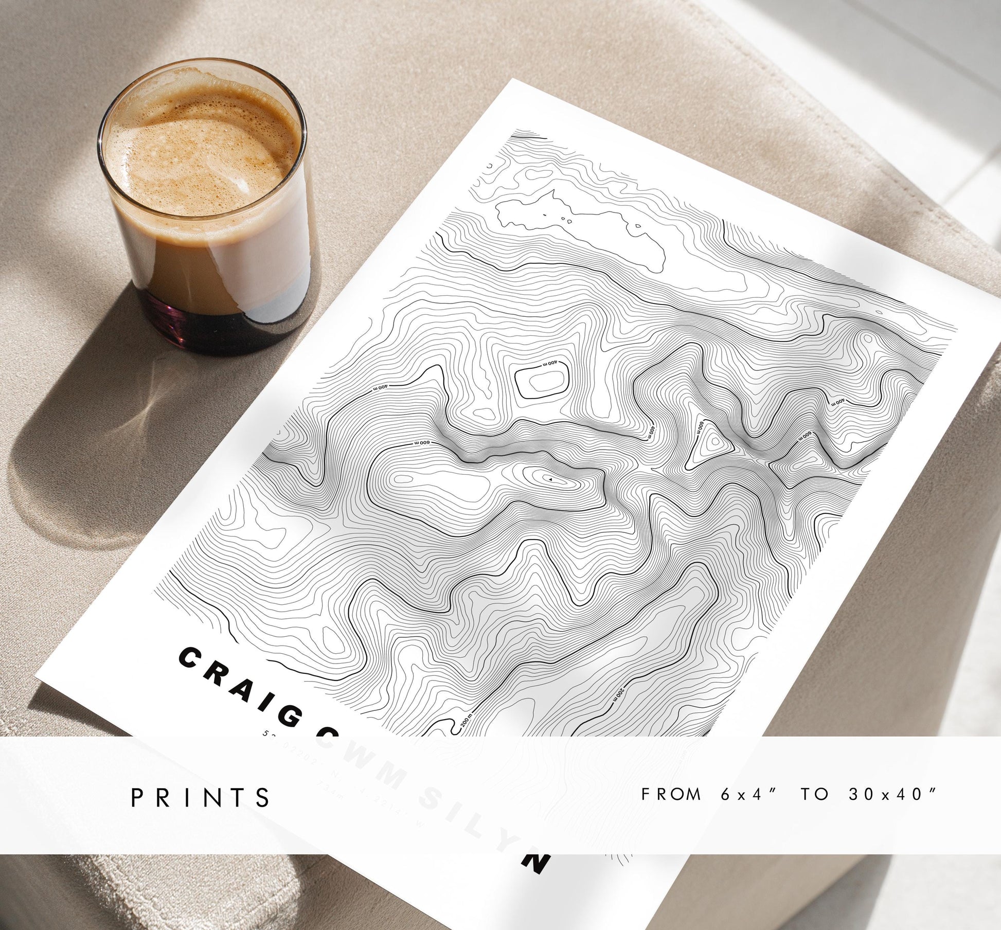 Craig Cym Silyn Print - Contour Map - Craig Cym Silyn Poster - Wales - Topographic Map - Print - Poster - Wall Art - Nantlle Ridge