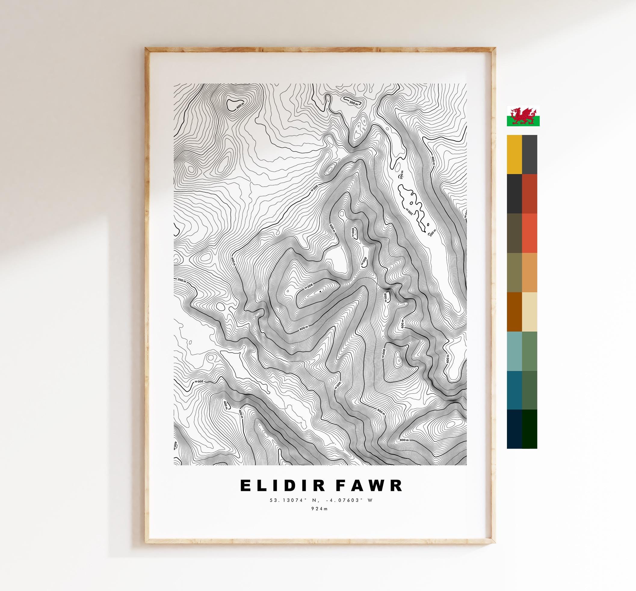 Elidir Fawr Print - Contour Map - Snowdonia - Wales - Topographic Map - Print - Poster - Wall Art - Elidir Fawr Poster - Glyderau Range