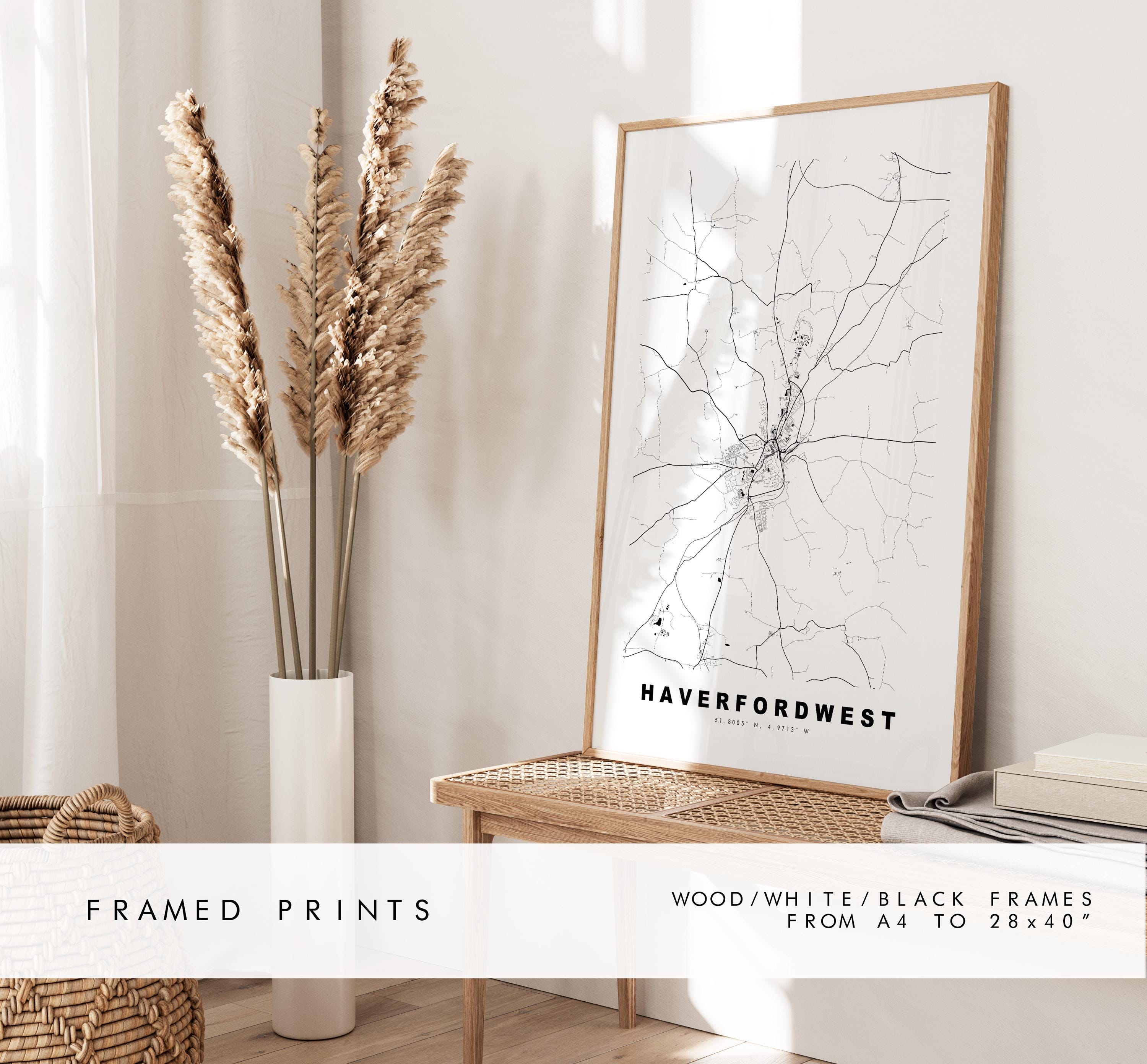 Haverfordwest Map Print - Minimalist City Map Poster - Map Art - Wales - UK - Haverfordwest Print - Poster - Different Colours Available