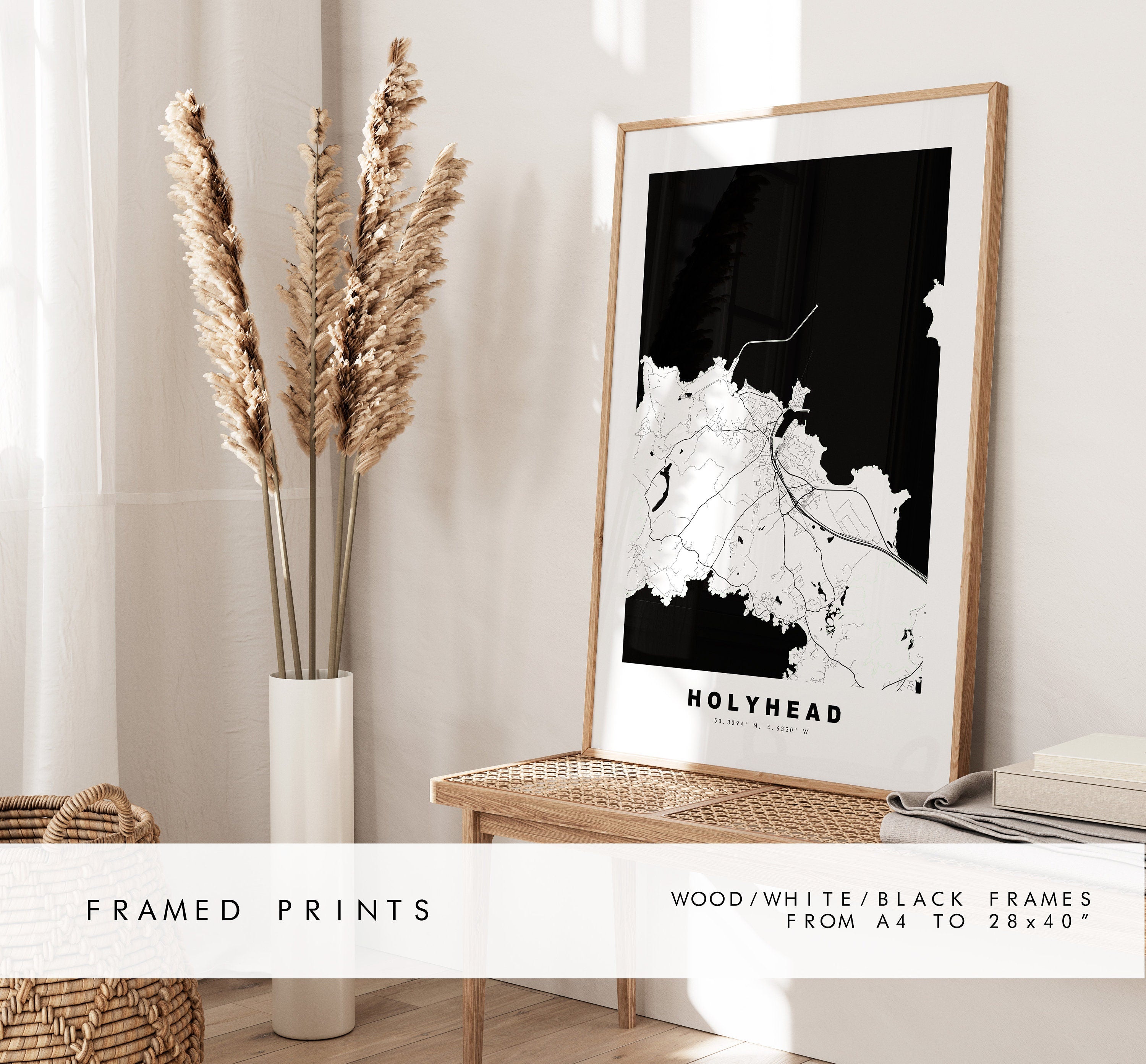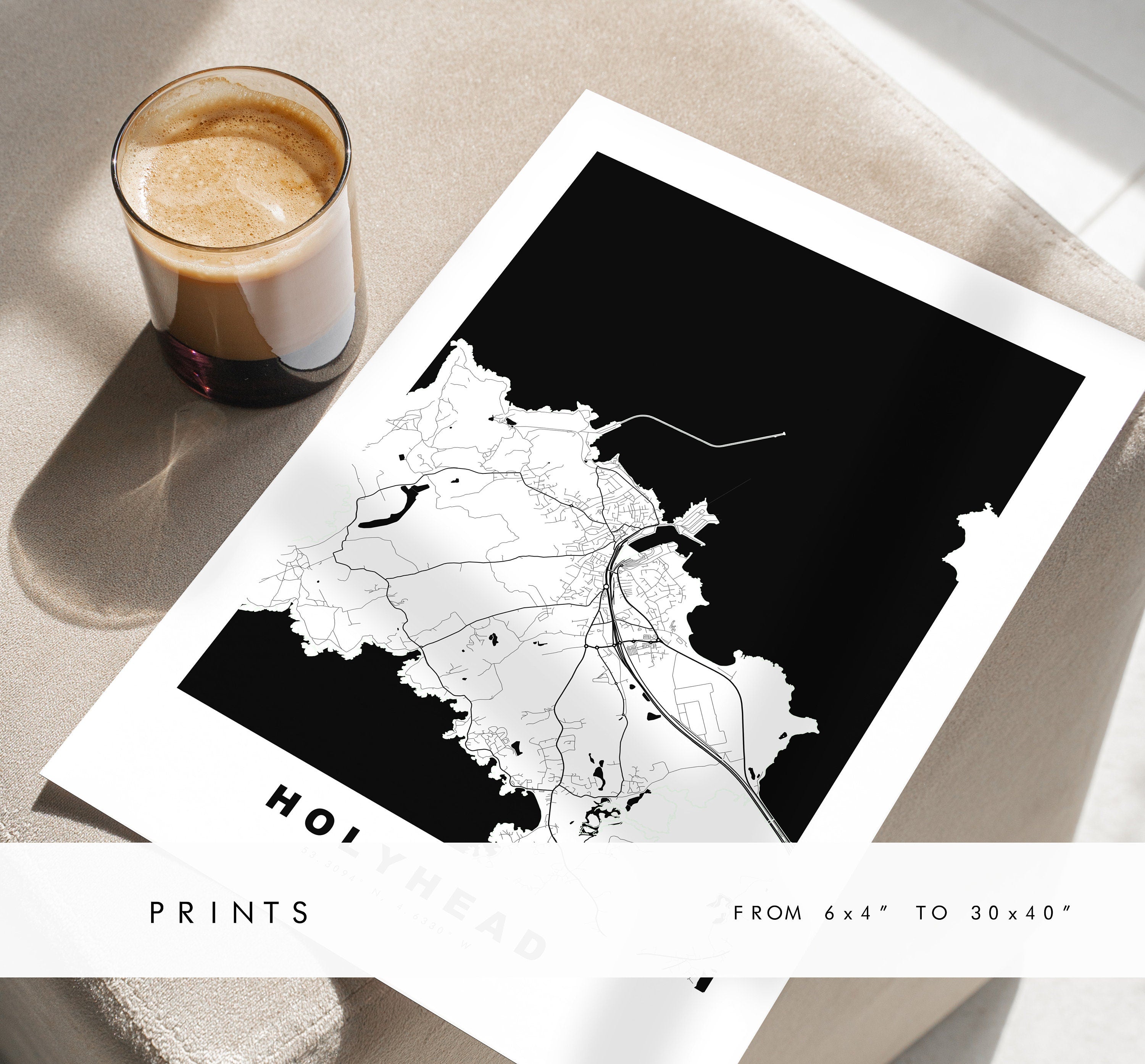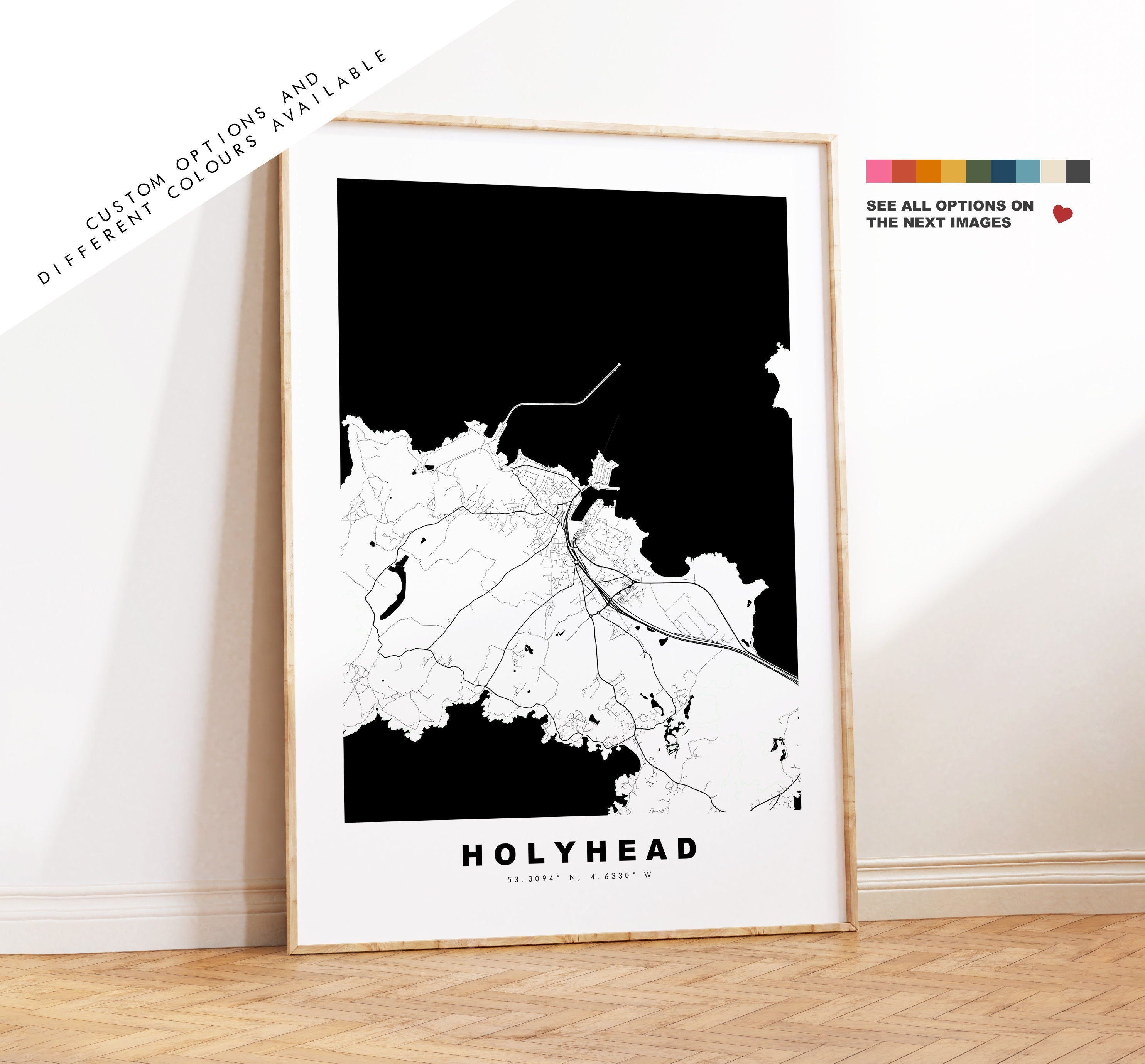 Holyhead Map Print - Minimalist City Map Poster - Map Art - Wales - UK - Holyhead Print - Holyhead Poster - Different Colours Available