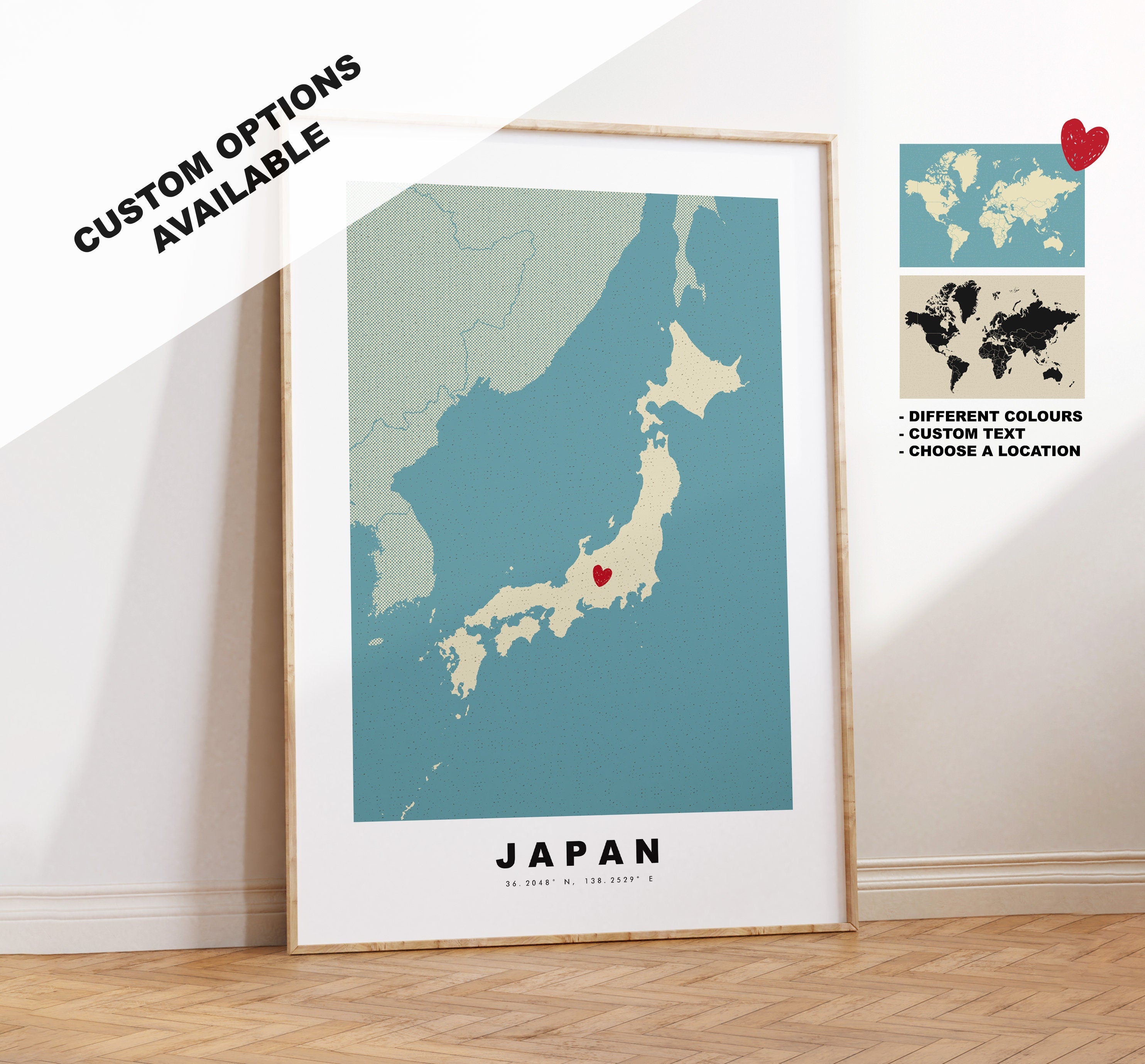 Japan Map Print - Personalised Map Gift - Framed or Canvas Options Available - Custom Text Options - Personalised Gift - Asia
