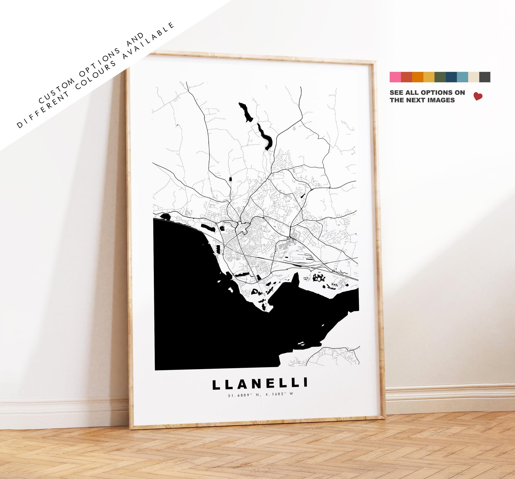Llanelli Map Print - Minimalist City Map Poster - Map Art - Wales - UK - Llanelli Print - Llanelli Poster - Different Colours Available